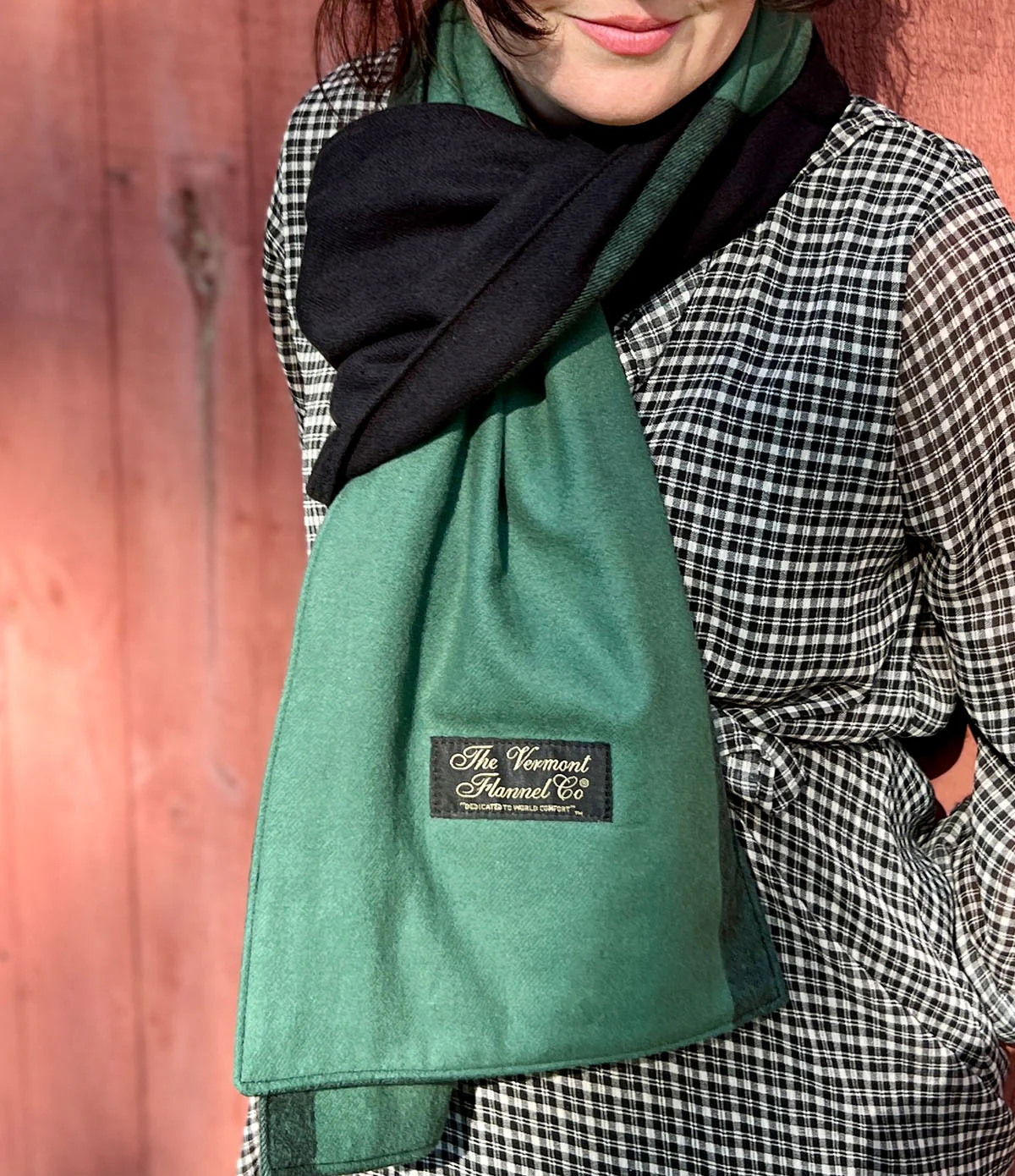 Wrap yourself in the cozy warmth of Vermont with the heavyweight flannel scarf in Evergreen. Both longer and thicker than our standard scarves, this ultra-soft organic scarf is perfect for staying comfy in chilly weather. Each cut of Evergreen—a colossal green buffalo plaid—is unique, so no two scarves are alike. Enjoy the warmth season after season. Wash cool, dry low.