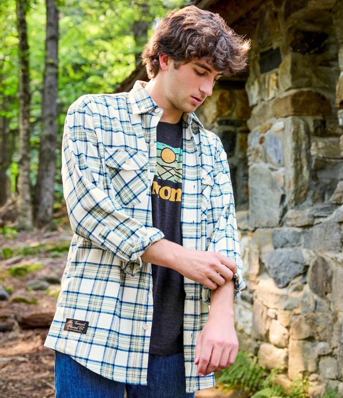 Crafted with unparalleled quality, our best-selling button-down flannel shirt for men epitomizes the comfort and craftsmanship synonymous with Vermont Flannel. It boasts two front chest pockets with button flaps, meticulously designed with matching stripes at the seams.