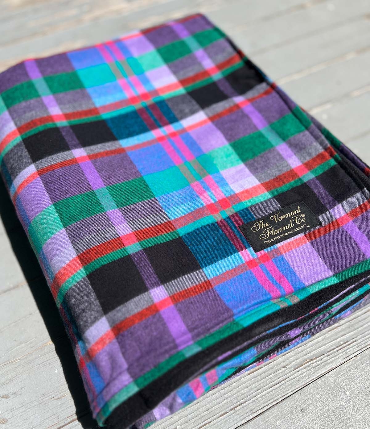 Enjoy endless summer vibes with the Garden Island Stadium Blanket. Garden Island is a small yet abundantly beautiful island on Vermont's Lake Champlain. This lush flannel blanket is ready for year-round adventures, offering its ultra-soft cotton touch and colorful warmth whenever you need it. Hand cut and sewn in America with 100% organic cotton. Wash cool, dry low.